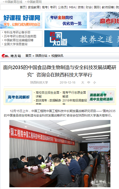 中國(guó)教育網(wǎng):面向2035的中國(guó)食品微生物制造與安全科技發(fā)展戰(zhàn)略研究”咨詢會(huì)在陜西科技大學(xué)舉行
