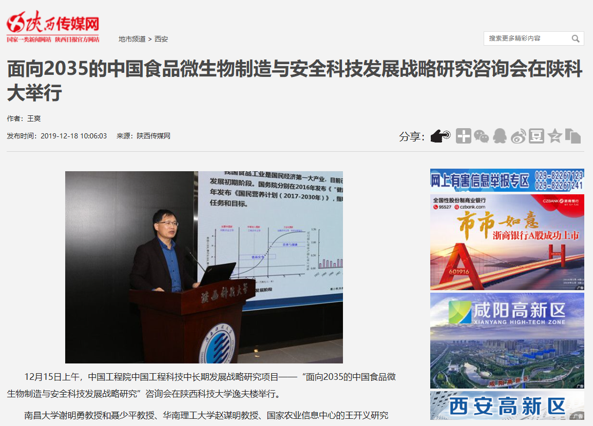 陜西傳媒網(wǎng):面向2035的中國(guó)食品微生物制造與安全科技發(fā)展戰(zhàn)略研究咨詢會(huì)在陜科大舉行