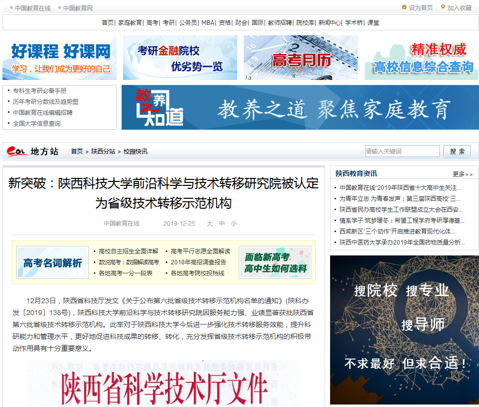 中國教育網(wǎng):陜科大前沿科學與技術轉移研究院被認定為省級技術轉移示范機構