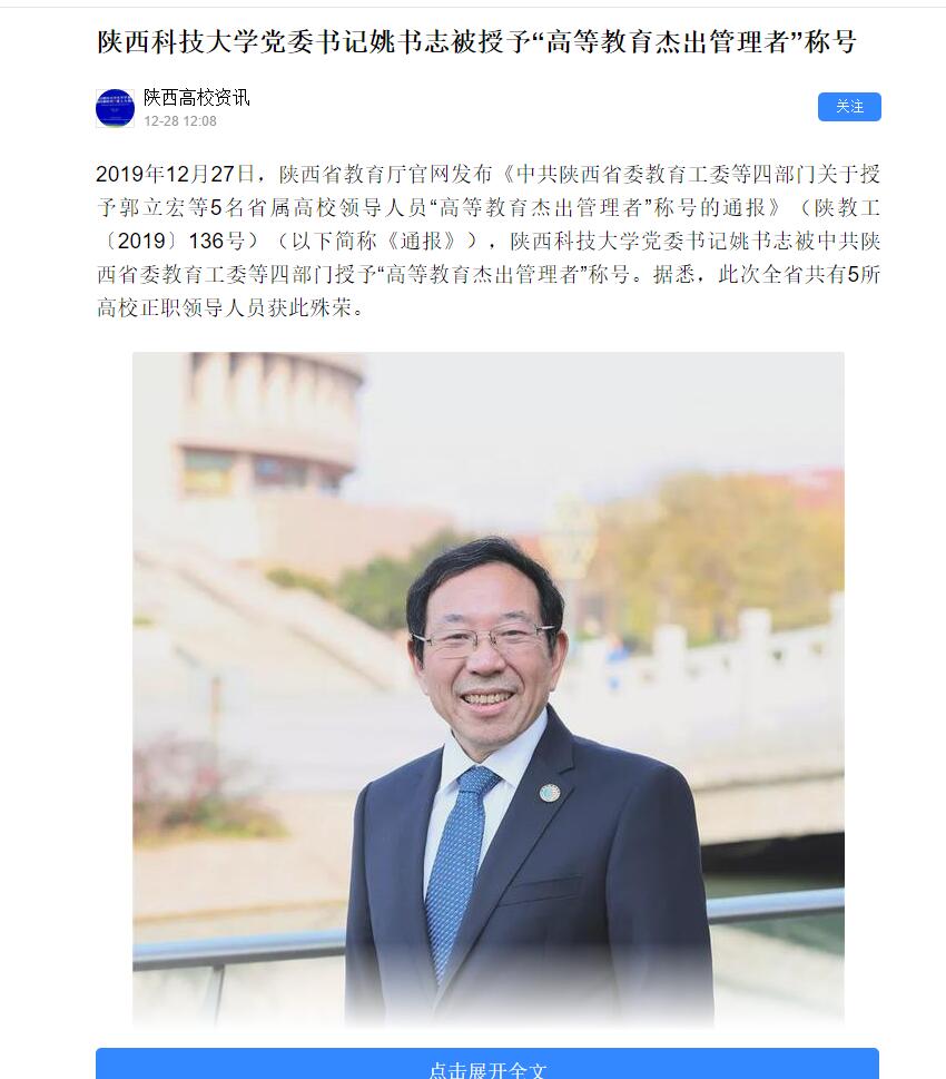 今日頭條APP:陜西科技大學(xué)黨委書記姚書志被授予“高等教育杰出管理者”稱號