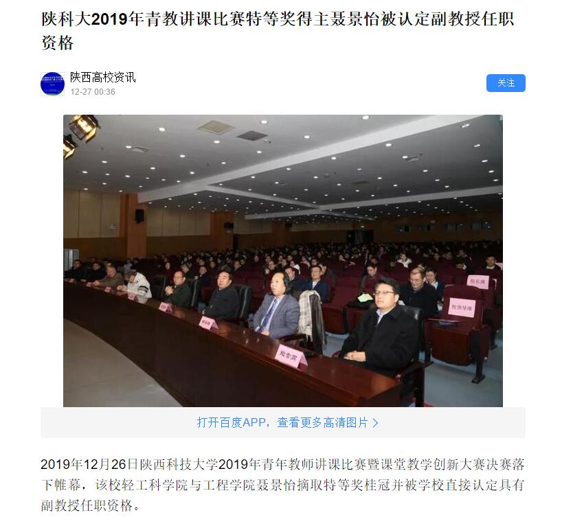 百度APP:陜科大2019年青教講課比賽特等獎(jiǎng)得主聶景怡被認(rèn)定副教授任職資格