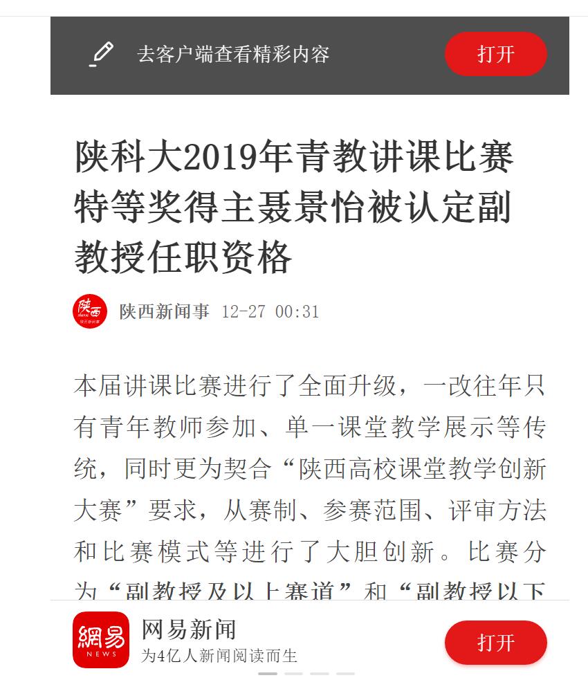 網(wǎng)易新聞APP:陜科大2019年青教講課比賽特等獎(jiǎng)得主聶景怡被認(rèn)定副教授任職資格
