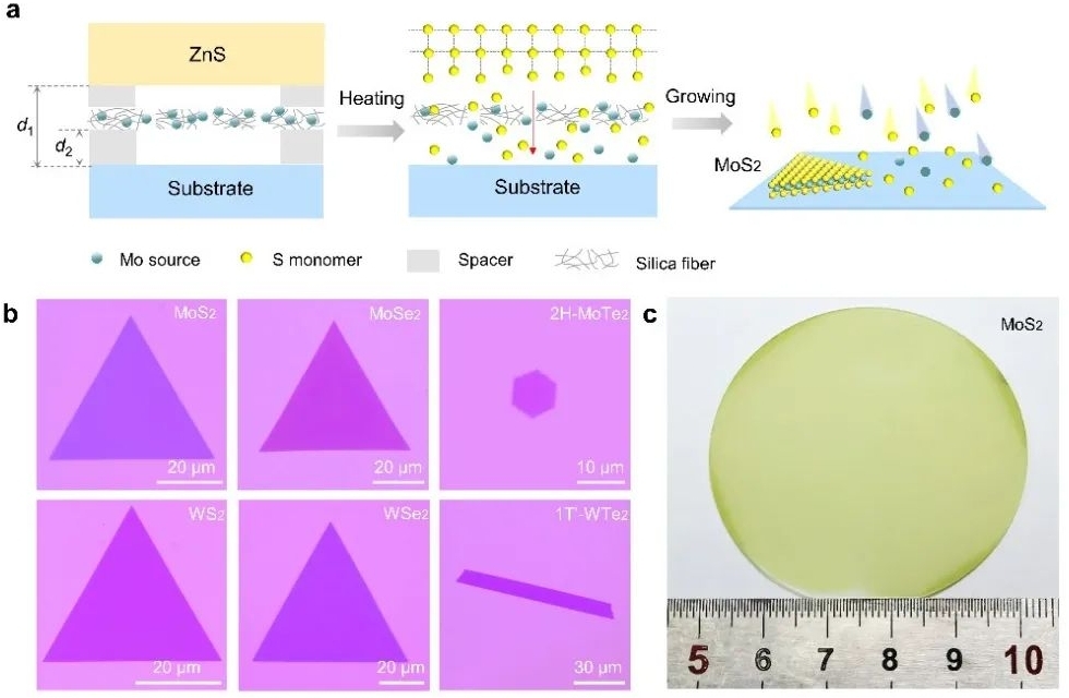 成果2:丁利蘋副教授與北京大學(xué)王恩哥院士、劉開(kāi)輝教授,南方科技大學(xué)俞大鵬院士、韓國(guó)基礎(chǔ)科學(xué)研究院丁峰教授等合作,針對(duì)目前常規(guī)方法中采用升華硫單質(zhì)制備二維半導(dǎo)體TMDs中存在高密度硫空位的問(wèn)題,提出了一種表界面硫族單原子供應(yīng)制備高品質(zhì)TMDs及其合金的新方法。該方法通過(guò)設(shè)計(jì)局域空間,成功實(shí)現(xiàn)低缺陷密度、優(yōu)異光學(xué)和電學(xué)特性的單層MX2(M=Mo、W;X=S、Se、Te)晶圓制備,并首次報(bào)道了四元合金MoS2(1-x-y)Se2xTe2y的可控合成。該成果被推薦為“中國(guó)半導(dǎo)體十大研究進(jìn)展候選”(新聞鏈接https://mp.weixin.qq.com/s/RI5UCUCUgQSigi2vkGW3nQ)。相關(guān)研究成果發(fā)表于“Nature Communications 13, 1007”雜志上。左勇剛、劉燦、丁利蘋、喬瑞喜為論文共同第一作者;北京大學(xué)劉開(kāi)輝、韓國(guó)基礎(chǔ)科學(xué)研究院丁峰、中國(guó)科學(xué)院物理研究所白雪冬和北京大學(xué)博士后劉燦為共同通訊作者。