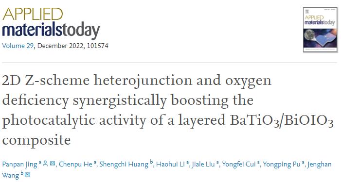 半導(dǎo)體光催化氧化還原技術(shù)被認(rèn)為是未來(lái)清理環(huán)境污水中有機(jī)污染物最“綠色”和可操作性的手段之一,其中,技術(shù)核心是光催化材料。在眾多影響材料催化性能的因素中,太陽(yáng)能的利用率和光生載流子的量子產(chǎn)率最為關(guān)鍵。為此,景盼盼博士等人以BaTiO3為基體,基于界面晶格氧空位和Z-型異質(zhì)結(jié)構(gòu),開(kāi)發(fā)了具有超高光催化降解抗生素(Tetracycline)活性的BaTiO3/BiOIO3層狀復(fù)合材料,通過(guò)DFT計(jì)算,建立了晶格氧空位與界面IO3-/I-氧化還原對(duì)和能帶結(jié)構(gòu)之間的聯(lián)系:BiOIO3側(cè)的晶格氧空位不僅將其導(dǎo)帶下移,增強(qiáng)對(duì)太陽(yáng)光的吸收,而且有助于界面處IO3-/I-氧化還原對(duì)的形成,提升光生載流子的Z型分離效率,進(jìn)而提升復(fù)合材料的光催化活性。本研究工作主要由景盼盼博士和其碩士研究生何晨譜(將于2022年秋季入學(xué)蘭州大學(xué)化工學(xué)院攻讀博士學(xué)位)共同完成。理論計(jì)算由臺(tái)灣師范大學(xué)的Prof. Jenghan Wang與其研究生完成。(陜西科技大學(xué)為第一通訊單位,臺(tái)灣師范大學(xué)為第二通訊單位)
