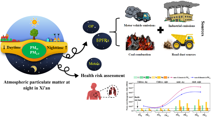研究指出西安作為中國西北最大的城市,近年來空氣質(zhì)量得到了很大改善,但隨著步入大氣污染治理新階段、也正面臨著眾多新的挑戰(zhàn)。該項研究發(fā)現(xiàn)西安地區(qū)大氣PM2.5中含有除重金屬、碳質(zhì)組分等常規(guī)健康風(fēng)險物質(zhì)外,還含有新型健康風(fēng)險物質(zhì)長壽命自由基,它們共同對空氣健康造成潛在危害。該地區(qū)顯著的一個污染特征是大氣PM2.5在夜晚絕對濃度和絕對健康風(fēng)險都較白天顯著升高,這個現(xiàn)象歸因于晝夜變化的氣象條件和污染來源的改變,夜晚應(yīng)該針對性的進(jìn)行源頭管控。沙塵暴對西安市空氣質(zhì)量和呼吸健康造成驟然影響,健康風(fēng)險可以提高數(shù)倍甚至數(shù)十倍,沙塵天氣的危害可能比冬季霧霾時期更值得人們注意。研究最后對大氣PM2.5以及健康風(fēng)險物質(zhì)的來源進(jìn)行了詳細(xì)解析,并根據(jù)結(jié)果提出了針對西安地區(qū)空氣健康危害消減的大氣污染治理措施。