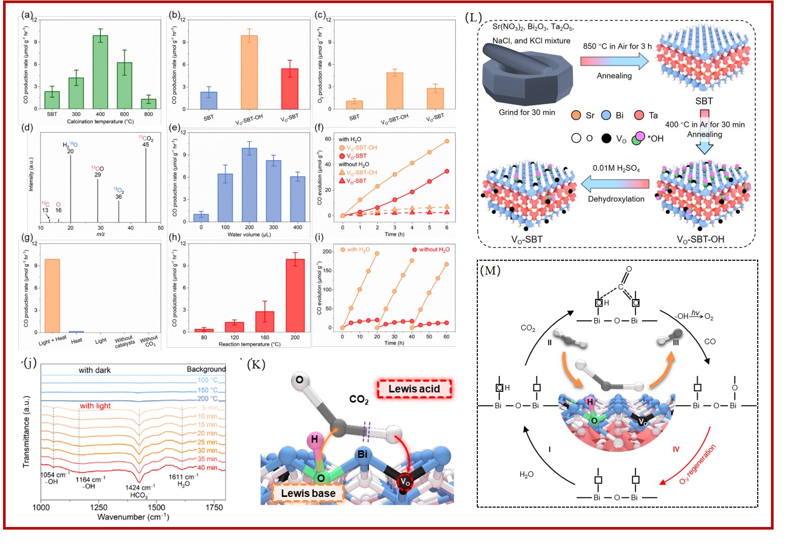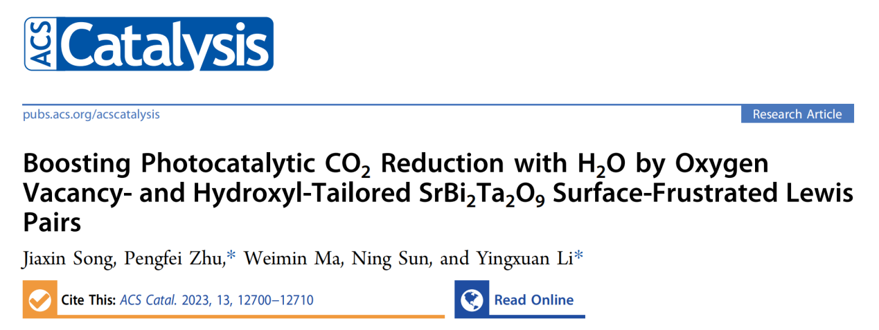 近日,我校環(huán)境科學(xué)與工程學(xué)院朱鵬飛副教授聯(lián)合哈爾濱工業(yè)大學(xué)李英宣教授在國際催化領(lǐng)域頂級(jí)期刊《ACSCatalysis》(IF=12.9,中科院一區(qū))上發(fā)表題為“Boosting Photocatalytic CO2Reduction with H2O by Oxygen Vacancies and Hydroxyls Tailored SrBi2Ta2O9Surface Frustrated Lewis Pairs”的研究論文。該研究通過在SrBi2Ta2O9(SBT)表面成功構(gòu)筑受阻Lewis酸堿對(duì)(FLPs),利用氧空位(VO)和表面羥基(-OH)分別作為L(zhǎng)ewis酸位點(diǎn)和Lewis堿位點(diǎn),有效地提高了SBT對(duì)CO2的吸附和活化能力,合成的VO-SBT-OH催化劑在沒有任何犧牲劑和助催化劑的情況下用純水將CO2高效還原為CO,達(dá)到了反應(yīng)60小時(shí)的穩(wěn)定性。我校為論文的第一通訊單位,碩士生宋佳欣為第一作者,朱鵬飛副教授和李英宣教授為通訊作者。