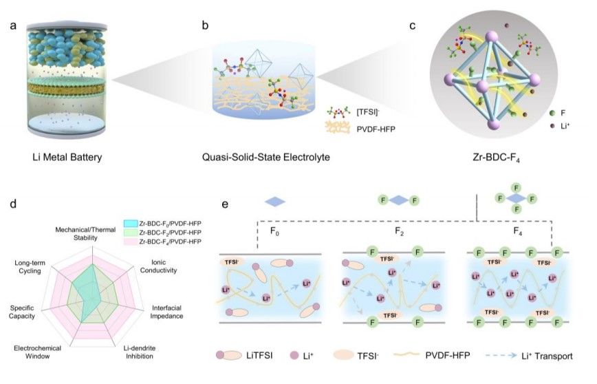 近日,我?;瘜W(xué)與化工學(xué)院黃文歡教授團隊在Advanced Materials期刊發(fā)表題為“Universal F4-modified Strategy on Metal Organic Framework to Chemical Stabilize PVDF-HFP as Quasi-Solid-State Electrolyte”的研究論文,黃文歡教授、阿卜杜拉國王科技大學(xué)張華彬教授、揚州大學(xué)龐歡教授為論文共同通訊作者,合作者包括西安交通大學(xué)儀器分析中心鄧楠、梁艷,為本論文提供了重要的測試協(xié)助。陜西科技大學(xué)為第一通訊單位。