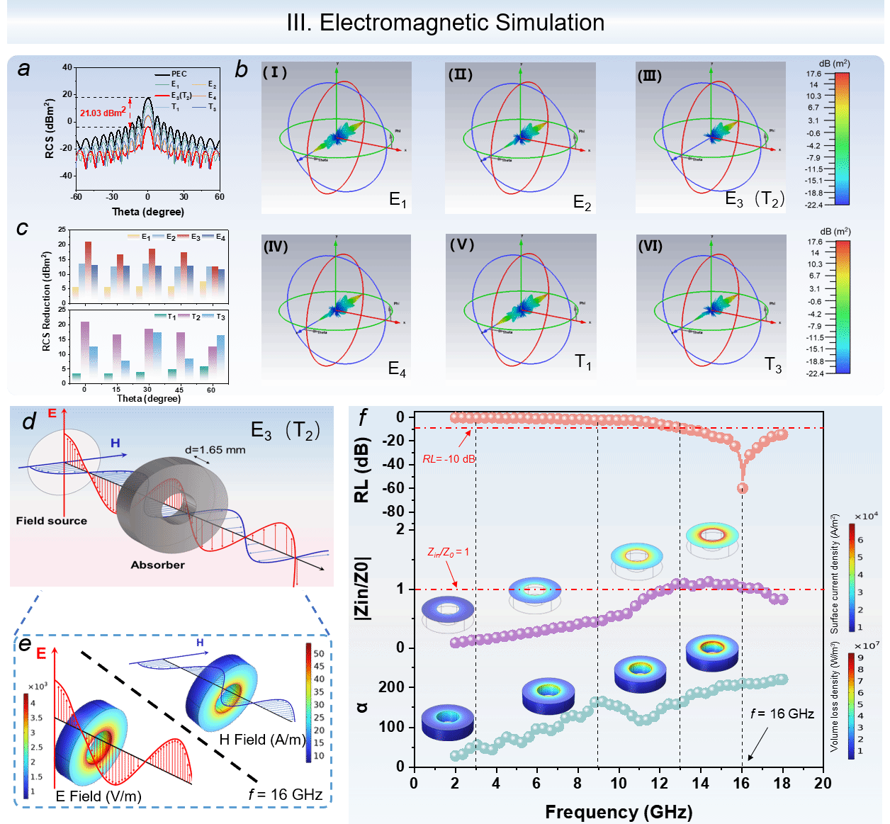 3. 對(duì)于電磁波的傳導(dǎo)及耗散機(jī)理,通過(guò)COMSOL仿真軟件模擬了不同頻率下的動(dòng)態(tài)損耗過(guò)程,揭示了電磁波的阻抗特性與原位衰減過(guò)程。深入解釋了阻抗匹配和衰減能力在電磁波吸收中的作用機(jī)制。