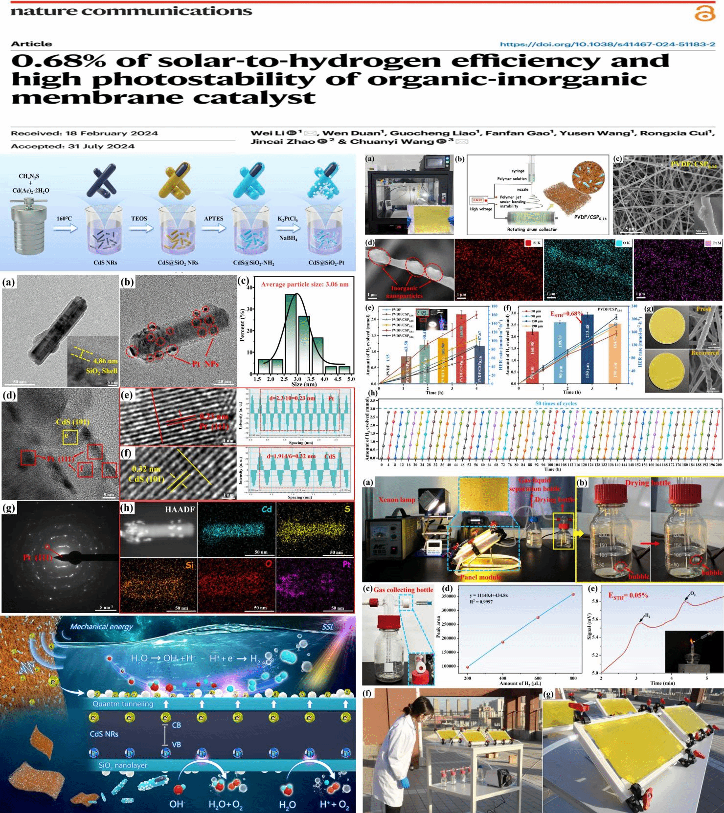 W. Li*, W. Duan, G. Liao, F. Gao, Y. Wang, R. Cui, J. Zhao, C. Wang*. 0.68% of solar-to-hydrogen efficiency and high photostability of organic-inorganic membrane catalyst. Nat. Commun. 2024, 15, 6763. https://doi.org/10.1038/s41467-024-51183-2