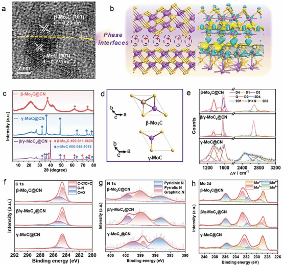 圖1. 雙相 β/γ-MoCx@CN 的組裝及理論計算