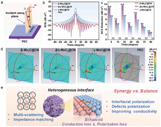 圖4. 雙相β/γ-MoCx@CN的電磁波響應(yīng)的基本機(jī)制