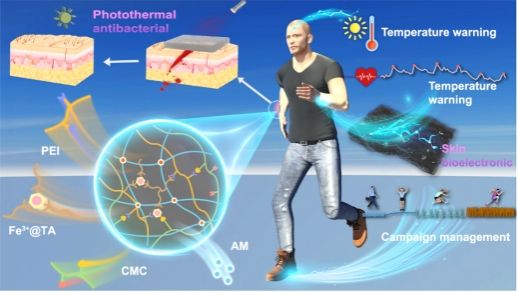 8. 團(tuán)隊(duì)王學(xué)川教授、黨旭崗副教授報(bào)道了一種羧甲基纖維素和單寧酸/鐵離子絡(luò)合物(TA@Fe3+)組成的具有快速自組裝和可調(diào)交聯(lián)時(shí)間的堅(jiān)固、粘接、自修復(fù)、可注射、抗菌、近紅外(NIR)光熱響應(yīng)、生物相容性和導(dǎo)電的水凝膠(CPPFe@TA),在生理信號(hào)監(jiān)測(cè)和康復(fù)運(yùn)動(dòng)管理等皮膚生物電子學(xué)領(lǐng)域具有廣闊的應(yīng)用前景。相關(guān)工作被發(fā)表在國(guó)際材料領(lǐng)域的頂級(jí)期刊Advanced Functional Materials, 2024, 2405745。