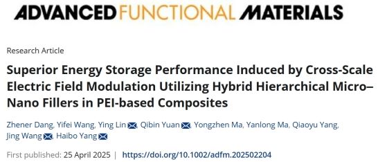 近日,材料科學(xué)與工程學(xué)院楊海波教授團(tuán)隊,在國際頂級期刊《Advanced Functional Materials》(IF:18.5)上發(fā)表了題為“Superior Energy Storage Performance Induced by Cross-Scale Electric Field Modulation Utilizing Hybrid Hierarchical Micro–Nano Fillers in PEI-based Composites”的研究論文。我校楊海波教授、林營教授、袁啟斌副教授和南京航空航天大學(xué)王婧教授為文章共同通訊作者,材料學(xué)院博士生黨禎兒和西安交通大學(xué)王軼飛副教授為文章共同第一作者,陜西科技大學(xué)為第一通訊單位。