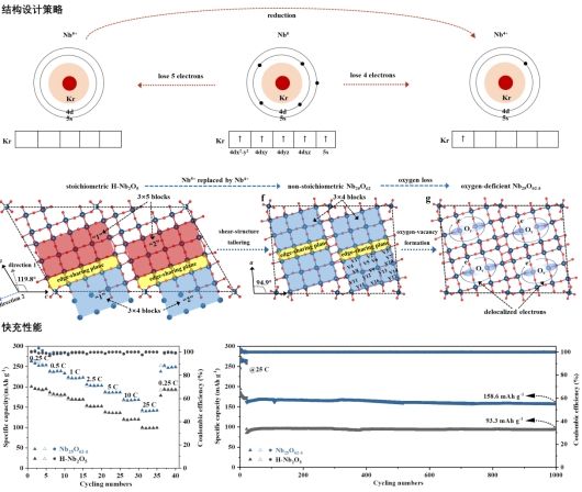 加速高功率快充鋰離子電池及其關(guān)鍵材料的研制對我國發(fā)展下一代民用和特殊領(lǐng)域用電動設(shè)備具有重要意義。具有晶體學(xué)剪切結(jié)構(gòu)的鈮氧化物因其在高能量密度、高功率鋰離子電池中的應(yīng)用潛力備受關(guān)注。然而,如何調(diào)控材料本征結(jié)構(gòu)以獲得兼具更高電子/離子電導(dǎo)率的新相,是實現(xiàn)高性能電化學(xué)儲鋰的重大挑戰(zhàn)。