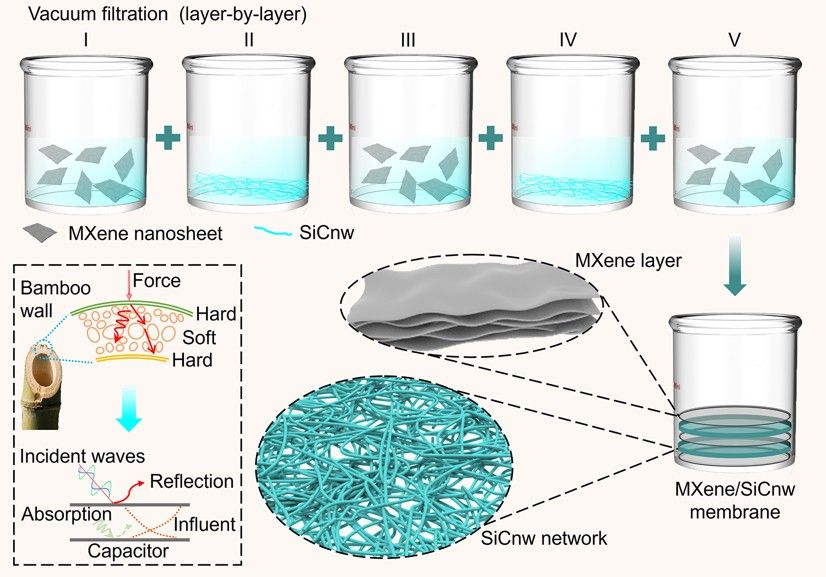 圖1 MXene/SiCnw復合薄膜的設計和制備示意圖