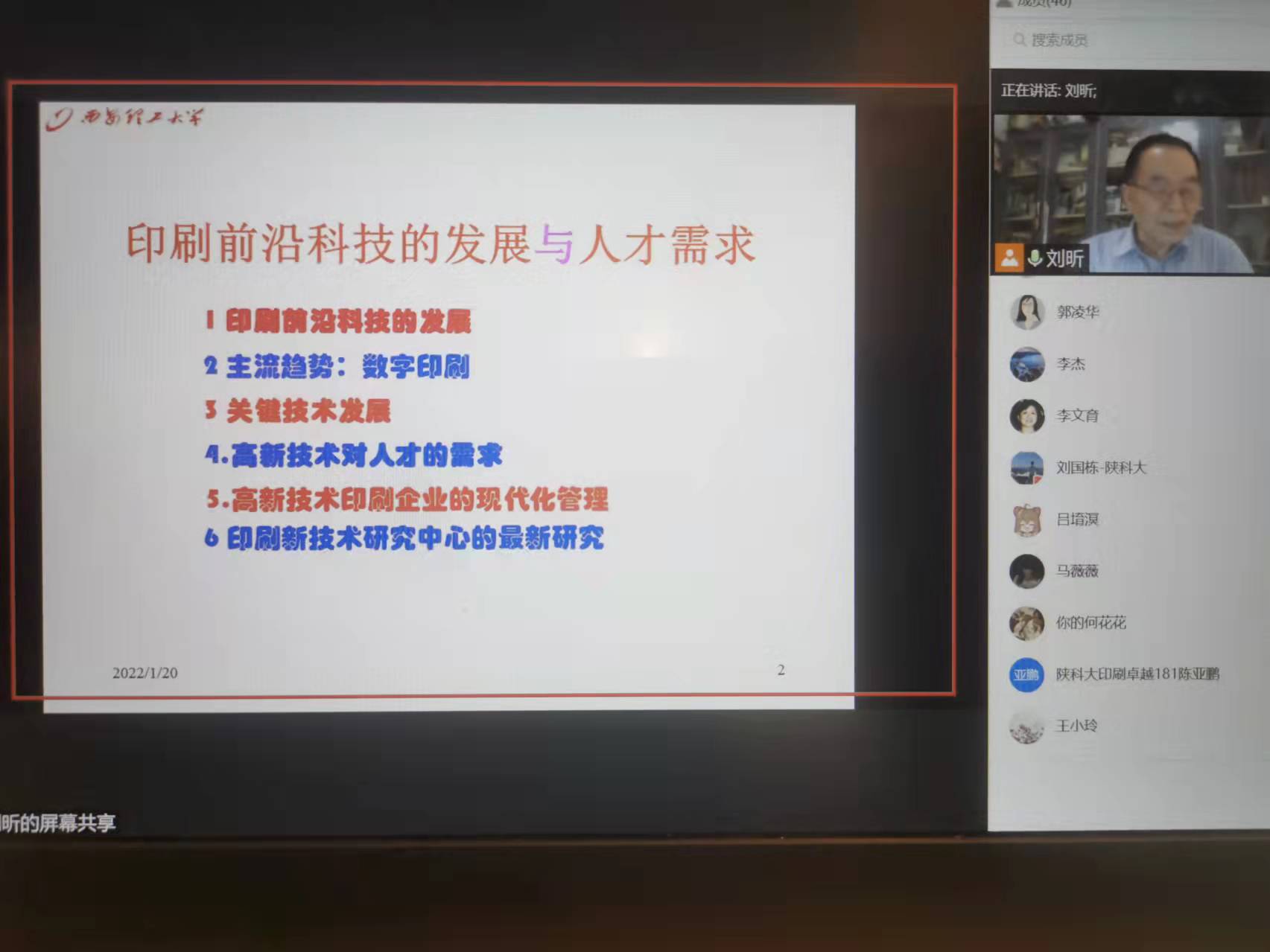 1月20日下午,應(yīng)輕工科學(xué)與工程學(xué)院和研究生院邀請(qǐng),西安理工大學(xué)印刷包裝與數(shù)字媒體學(xué)院劉昕教授做客我?!拔囱雽?dǎo)師論壇”,并作了題為“印刷前沿科技的發(fā)展與人才需求”的學(xué)術(shù)報(bào)告。報(bào)告會(huì)由輕工學(xué)院副院長(zhǎng)劉國(guó)棟教授主持,學(xué)院相關(guān)專業(yè)教師、研究生和本科生聆聽了本次報(bào)告。因受疫情影響,本次報(bào)告采取線上會(huì)議方式進(jìn)行。