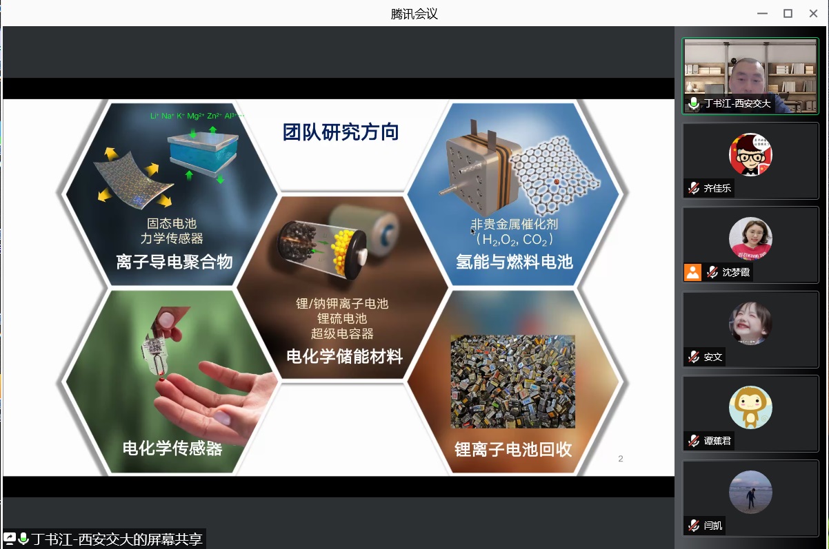 1月18日上午,應(yīng)我校輕工科學(xué)與工程學(xué)院、科技處及前沿院邀請,西安交通大學(xué)丁書江教授做客我?!扒把乜茖W(xué)報告”,作了題為“無機(jī)納米片陣列/聚合物復(fù)合固態(tài)電解質(zhì)研究及申請國家自然科學(xué)基金體會”的線上學(xué)術(shù)報告。報告由輕工學(xué)院院長呂斌主持,學(xué)院部分教師及相關(guān)專業(yè)研究生參加了本次報告。