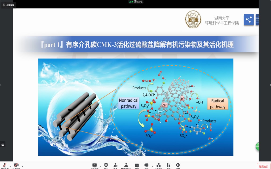 1月10日上午,應(yīng)輕工科學(xué)與工程學(xué)院和研究生院邀請(qǐng),湖南大學(xué)環(huán)境學(xué)院王佳佳博士做客我院“未央導(dǎo)師論壇”,并作了題為“碳基材料活化過(guò)硫酸鹽技術(shù)在水處理中的應(yīng)用研究”的報(bào)告。報(bào)告由輕工學(xué)院副院長(zhǎng)劉國(guó)棟教授主持,學(xué)院相關(guān)教師和研究生參加了本次報(bào)告會(huì)。受疫情影響,本次報(bào)告采取線上會(huì)議方式進(jìn)行。