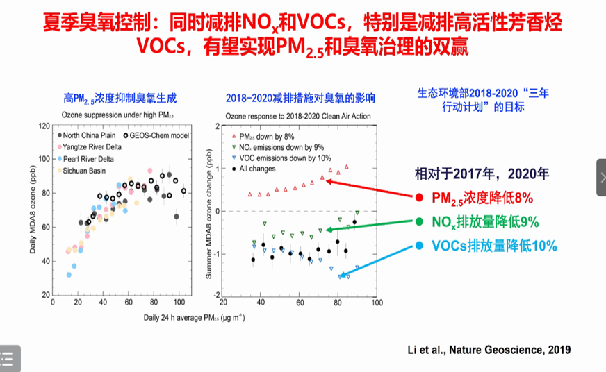 臭氧作為一種主要空氣污染物,會(huì)危害人體健康及陸地生態(tài)系統(tǒng),中國正面臨日益嚴(yán)重的臭氧污染問題。廖宏教授指出,在我國城市地區(qū)夏季臭氧經(jīng)常成為首要大氣污染物,研究臭氧污染的成因?qū)τ谥贫ㄓ行У臏p排策略非常重要。報(bào)告從化學(xué)機(jī)制和氣象條件兩個(gè)方面,詳細(xì)解析了近年來導(dǎo)致我國臭氧濃度上升的原因。廖宏教授強(qiáng)調(diào),在當(dāng)前嚴(yán)峻的大氣復(fù)合污染形勢(shì)下,需要更加有力的措施去控制NOx和VOCs的排放,特別是減排能同時(shí)形成臭氧和二次有機(jī)氣溶膠的高活性芳香烴VOCs,才能夠更有效地實(shí)現(xiàn)霾和臭氧治理的雙贏。