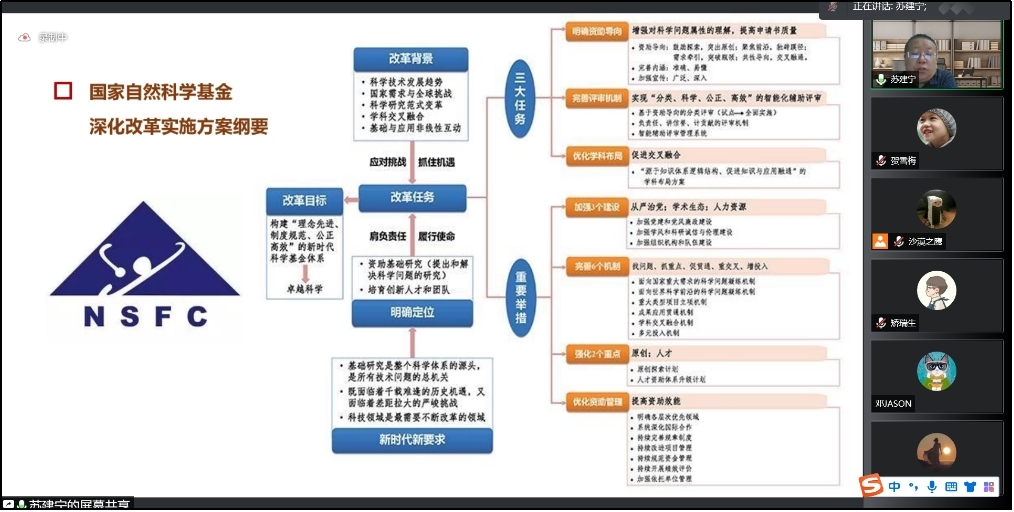 國家自然基金申報(bào)是一項(xiàng)重要的工作,選題的科學(xué)性、研究的創(chuàng)新性、成果的轉(zhuǎn)化性代表著國家的科研水平,更是高??蒲心芰Φ募畜w現(xiàn),賀雪梅教授希望大家向蘇教授學(xué)習(xí),挖掘自身的研究專長、凝練研究問題、學(xué)習(xí)研究方法,持之以恒的堅(jiān)定信念,在基金申報(bào)的道路上不斷學(xué)習(xí)、進(jìn)取、創(chuàng)新。