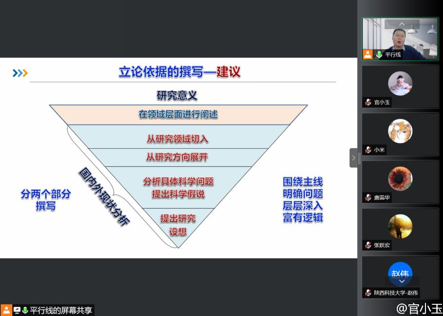 2月17日上午,受我校輕工科學(xué)與工程學(xué)院、科技處、前沿院邀請,空軍軍醫(yī)大學(xué)張偉教授做客我校“前沿科學(xué)報(bào)告”,作了題為“國家自然科學(xué)基金撰寫技巧及注意事項(xiàng)”的報(bào)告。報(bào)告會由輕工學(xué)院副院長劉國棟主持,線上線下同時進(jìn)行,輕工學(xué)院部分專任教師參加了本次報(bào)告會。