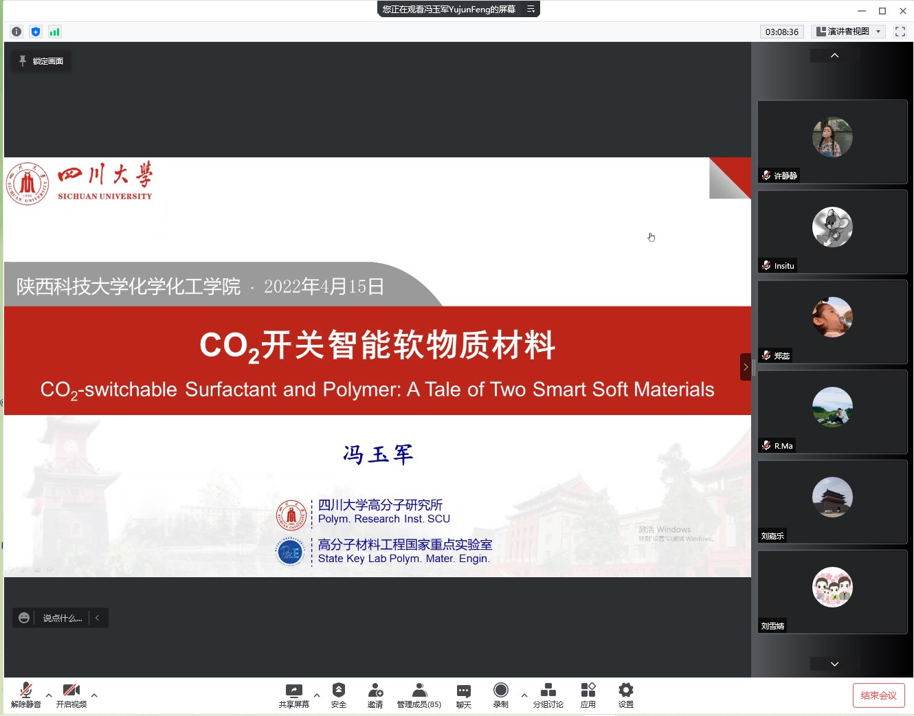 馮玉軍教授從軟物質(zhì)功能化及智能化的研究背景出發(fā),結(jié)合他近十年的工作,詳細(xì)介紹了CO2開關(guān)原理、CO2開關(guān)黏彈性表面活性劑、CO2開關(guān)聚合物以及CO2開關(guān)軟物質(zhì)材料的應(yīng)用等研究工作。同時(shí)也對該領(lǐng)域的研究方向進(jìn)行了展望,為相關(guān)研究領(lǐng)域的青年教師提供了研究思路及方向。