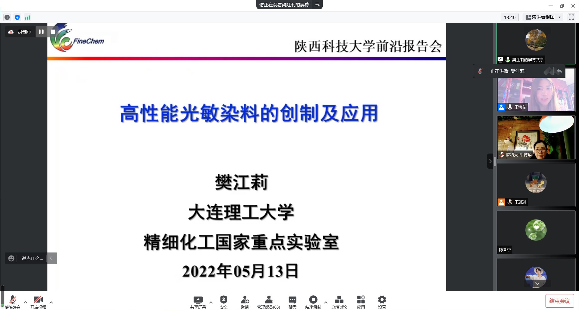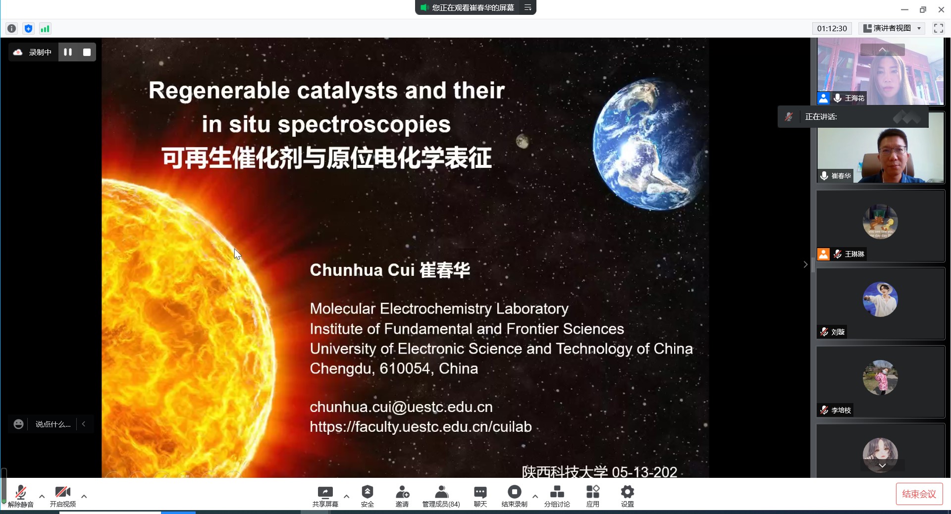 5月13日,應(yīng)我??萍继帯⑶把卦杭盎瘜W(xué)與化工學(xué)院邀請(qǐng),大連理工大學(xué)樊江莉教授和電子科技大學(xué)崔春華教授做客我?!扒把乜茖W(xué)報(bào)告”,作了題為“高性能光敏材料的創(chuàng)制及應(yīng)用”和“可再生催化劑與原位電化學(xué)表征”的報(bào)告。報(bào)告會(huì)由化學(xué)與化工學(xué)院王?;ń淌谥鞒郑瑢W(xué)院相關(guān)專業(yè)教師、研究生聆聽了此次報(bào)告會(huì)。