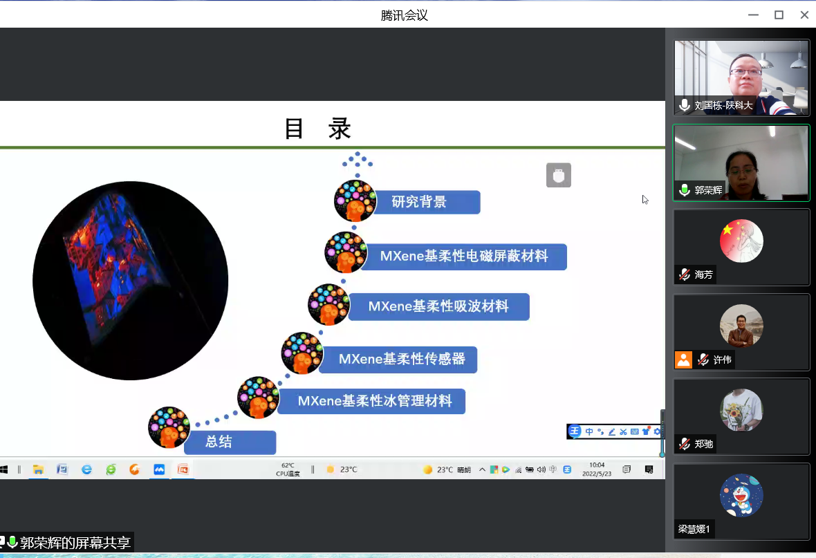 5月23日上午,應我校輕工科學與工程學院、科技處及前沿院邀請,四川大學郭榮輝教授做客我?!扒把乜茖W報告”,作了題為“MXene基柔性功能材料”的線上報告。報告會由輕工學院副院長劉國棟主持,學院相關專業(yè)教師、研究生參加了此次報告會。
