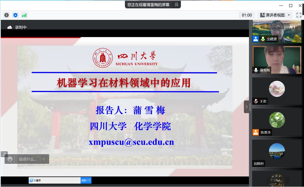 5月19日,應(yīng)我??萍继?、前沿院及化學(xué)與化工學(xué)院邀請,四川大學(xué)蒲雪梅教授和西北大學(xué)/西安石油大學(xué)李華教授做客我?!扒把乜茖W(xué)報告”,分別作了題為“機器學(xué)習在材料領(lǐng)域中的應(yīng)用”和“基于人工智能的化學(xué)測量學(xué)研究新范式芻議”的報告。報告會由化工學(xué)院副院長仝建波主持,學(xué)院相關(guān)專業(yè)教師、研究生聆聽了此次報告會。