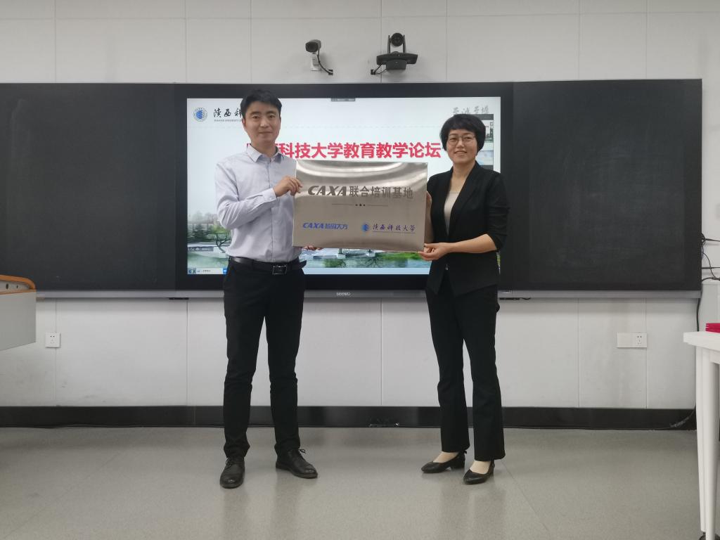 陳陽代表公司向機(jī)電學(xué)院捐贈SolidWorks正版軟件授權(quán)點130個,SolidWorks國際認(rèn)證考試免費(fèi)名額10個。王艷代表CAXA向機(jī)電學(xué)院機(jī)器人工程專業(yè)捐贈CAXA3D教育版軟件永久授權(quán)5個,用于教育培訓(xùn)和機(jī)器人研究開發(fā)。