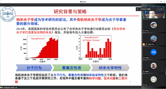 6月10日,應(yīng)我校輕工科學(xué)與工程學(xué)院、科技處、前沿院、研究生院邀請(qǐng),中山大學(xué)教授黃佳國、蘭州大學(xué)教授孫春霖分別做客我校“前沿科學(xué)報(bào)告”“未央導(dǎo)師論壇”,分別作了題為“Molecular imaging and disease diagnosis with renal-clearable optical agents”“有機(jī)手性激光材料的設(shè)計(jì)與表征”的線上學(xué)術(shù)報(bào)告。報(bào)告由輕工學(xué)院副院長劉國棟主持,學(xué)院相關(guān)專業(yè)教師、研究生參加了此次報(bào)告會(huì)。