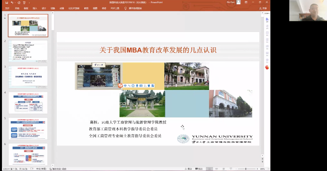 6月16日下午,應我校研究生院、經(jīng)濟與管理學院邀請,云南大學工商管理與旅游管理學院工商管理系高核教授為我校師生做了題為“關于我國MBA教育改革發(fā)展的幾點認識”的線上專題講座。講座由經(jīng)管學院副院長薛儉主持,學院教師和研究生代表共同參加。