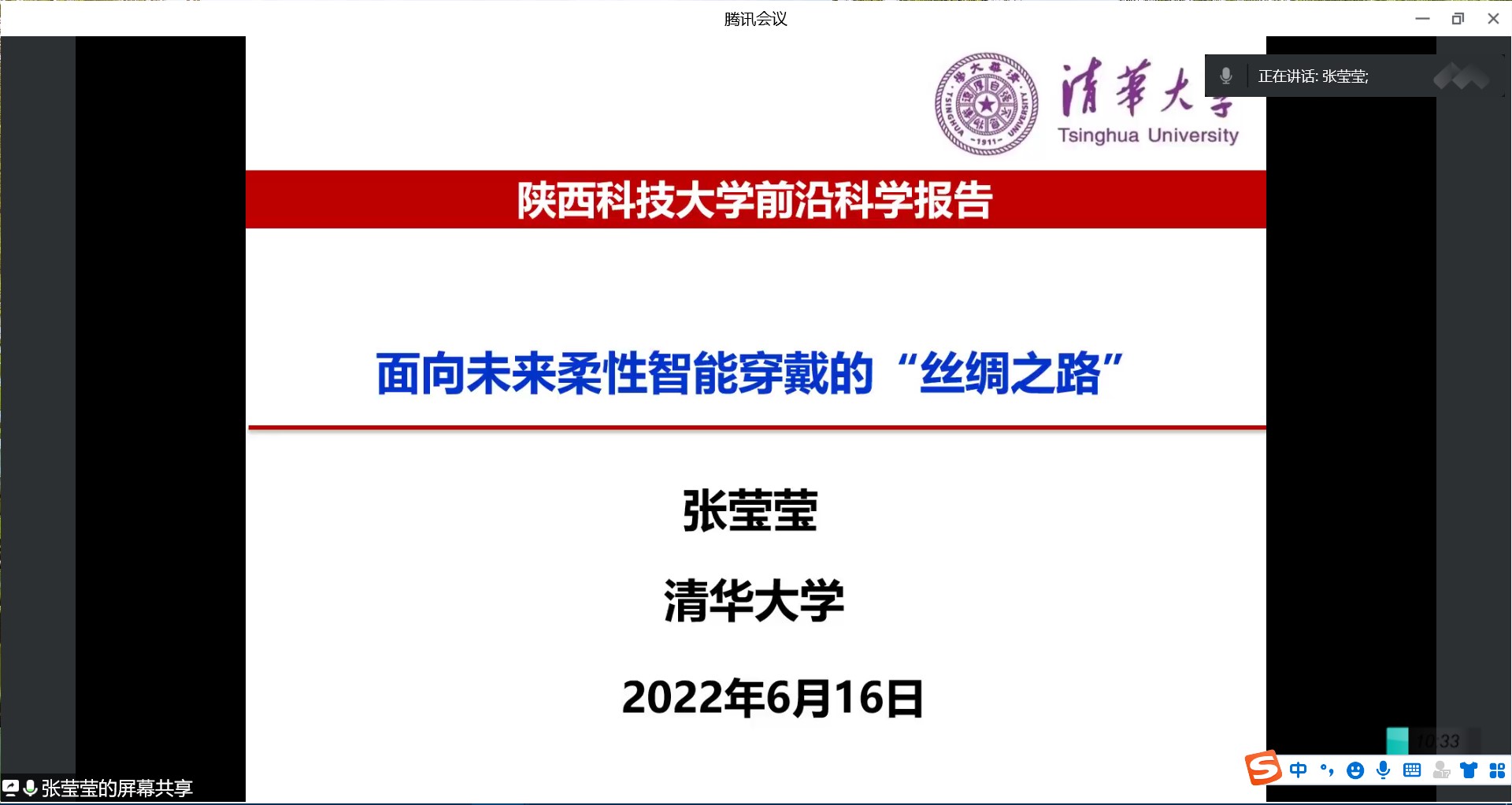 6月16日,應(yīng)我校輕工科學(xué)與工程學(xué)院、科技處及前沿院邀請,清華大學(xué)長聘副教授張瑩瑩、浙江日高智能機(jī)械股份有限公司董事長吳朝武做客我?!扒把乜茖W(xué)報告”“未央導(dǎo)師論壇”,分別作了題為“面向未來柔性智能穿戴的“絲綢之路””“新時代活性與智能包裝發(fā)展”的線上學(xué)術(shù)報告。報告由輕工學(xué)院院長呂斌主持,學(xué)院相關(guān)專業(yè)教師、研究生參加了此次報告會。