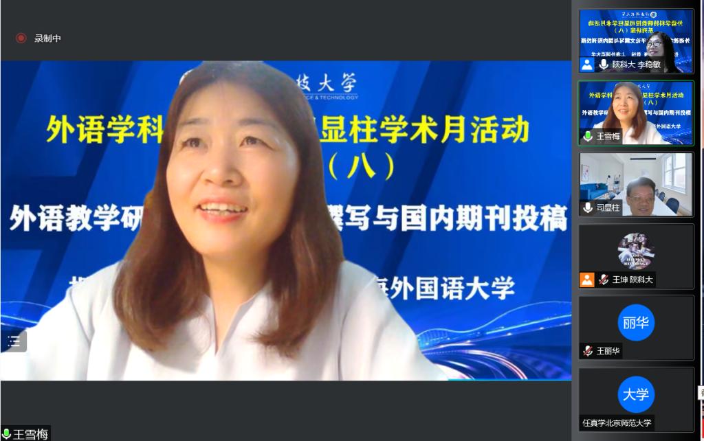 6月29日,上海外國語大學王雪梅教授做客我?!?span style="text-indent: 28px;">前沿科學報告”,做了題為“外語教學研究高水平論文撰寫與國內期刊投稿”的線上報告。報告由我校外語學科特聘教授司顯柱主持,參會人數達300人。文理學院6月組織開展的外語學科特聘教授司顯柱學術活動系列講座,旨在充分發(fā)揮我校特聘教授的學術引領和資源共享作用,推動我校外語學科內涵發(fā)展。