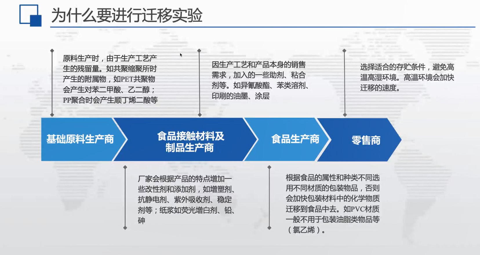 王思宇從實例出發(fā),闡述了包裝材料的滲透與遷移機理,通過該機理分析現(xiàn)行國標中對食品材料如何進行安全性評價,以及目前對于食品包裝材料檢測標準及其發(fā)展趨勢。隨后他介紹了化學品在包裝中的物質(zhì)遷移實驗和我國目前在食品接觸材料與法規(guī)方面的研究進展。