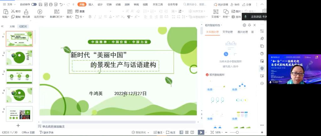 牛鴻英教授以近期中國電影為例,通過文化話語的維度深度剖析新時代“美麗中國”的基本內(nèi)涵、影像呈現(xiàn)方式和話語建構(gòu)策略等。牛鴻英教授指出,“美麗中國”既是新時代中國特色社會主義偉大實踐的影像與藝術(shù)表征,又是中國國際形象與文化全球傳播的話語策略,既是兼顧了藝術(shù)生產(chǎn)和市場消費的社會實踐,又是大眾權(quán)力碰撞表達(dá)和公共倫理協(xié)商平衡的文化實踐,是中國特色文化話語的重要組成部分。