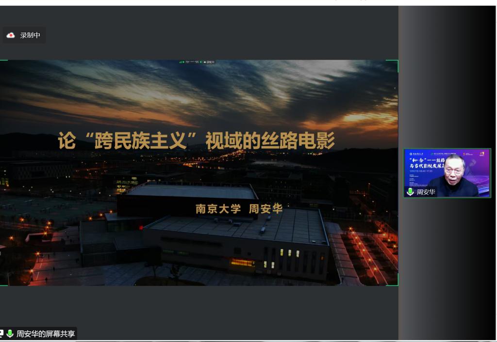 應(yīng)我校絲路文化與傳播學(xué)院、科技處及前沿院邀請,南京大學(xué)周安華教授、陜西師范大學(xué)牛鴻英教授分別于12月27日上午和下午做客我?!扒把乜茖W(xué)報告”,分別作了題為“論‘跨民族主義’視域的絲路電影”“新時代‘美麗中國’的影像表達(dá)與話語建構(gòu)”的線上學(xué)術(shù)報告。報告會由絲路文化與傳播學(xué)院院長劉宗明教授主持,學(xué)院相關(guān)專業(yè)師生及全國藝術(shù)設(shè)計同行400余人參加了兩場報告會。