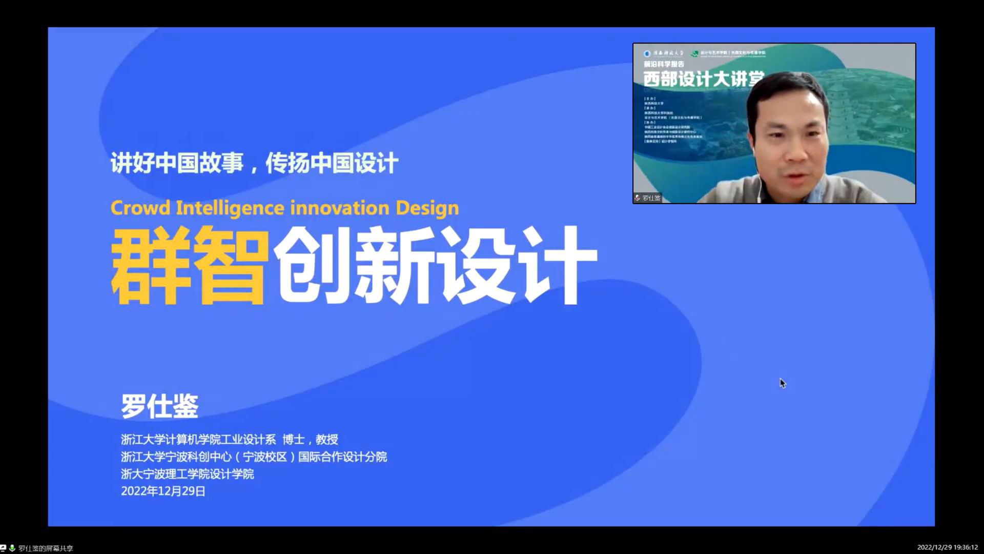 應(yīng)我校設(shè)計(jì)與藝術(shù)學(xué)院、科技處及前沿院邀請(qǐng),西北工業(yè)大學(xué)余隋懷教授、浙江大學(xué)羅仕鑒教授分別于12月26日晚、12月29日晚做客我校“前沿科學(xué)報(bào)告”,分別作了題為“從文物看中國(guó)古代的設(shè)計(jì)創(chuàng)新”“群智創(chuàng)新設(shè)計(jì)”的線上學(xué)術(shù)報(bào)告。報(bào)告會(huì)由設(shè)藝學(xué)院院長(zhǎng)劉宗明教授主持,設(shè)藝學(xué)院相關(guān)專業(yè)師生及全國(guó)設(shè)計(jì)同行500余人參加了兩場(chǎng)報(bào)告會(huì)。