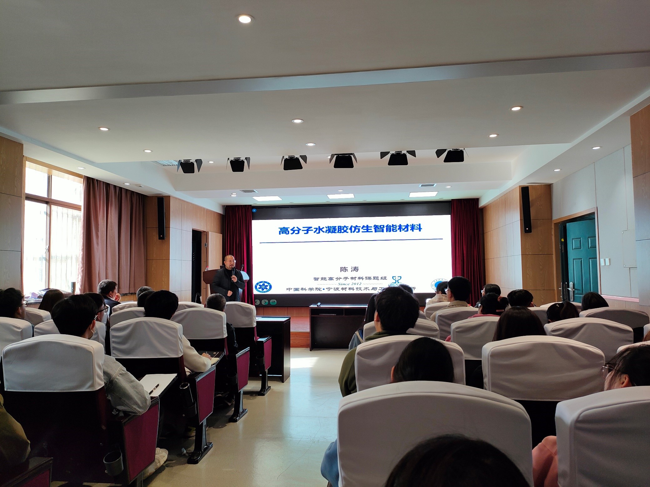 4月7日下午,應我校輕工科學與工程學院(柔性電子學院)、科技處及前沿院邀請,中國科學院寧波材料技術(shù)與工程研究所陳濤研究員做客我?!扒把乜茖W報告”,作了題為“高分子水凝膠仿生智能材料”的學術(shù)報告。報告會由輕工學院院長呂斌主持,學院相關(guān)專業(yè)教師、研究生參加了此次報告會。