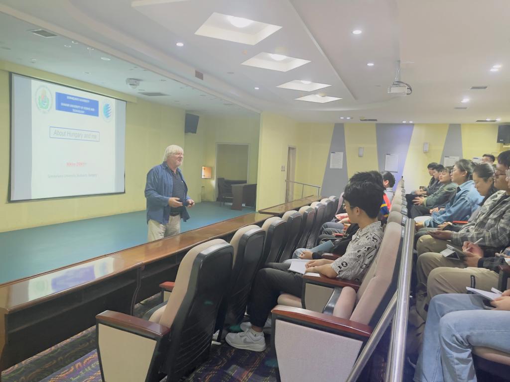 11月1日下午,應(yīng)我校輕工科學(xué)與工程學(xué)院(柔性電子學(xué)院)、科技處、國際處及前沿院邀請,匈牙利科學(xué)院院士、Budapest University of Technology and Economic原副校長、Semmelweis University大學(xué)軟物質(zhì)研究室主任、智能高分子水凝膠領(lǐng)域研究的著名專家Prof. Miklos Zrinyi教授做客我?!扒把乜茖W(xué)報告”,作了題為“From education and research to the Hungarian Academy of Sciences”的學(xué)術(shù)報告。報告會由輕工學(xué)院陳詠梅教授主持,眾多青年教師和研究生參加了此次報告會。