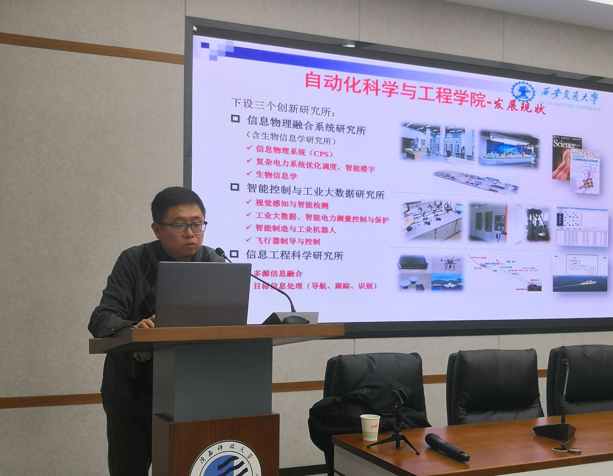 12月27日下午,電氣與控制工程學(xué)院邀請(qǐng)西安交通大學(xué)韓德強(qiáng)教授做客我?!扒把乜茖W(xué)報(bào)告”。作了題為“基于多源信息互補(bǔ)融合的目標(biāo)信息處理”的學(xué)術(shù)報(bào)告。會(huì)議由電控學(xué)院副院長(zhǎng)周強(qiáng)主持,相關(guān)專業(yè)教師和研究生參加了會(huì)議。