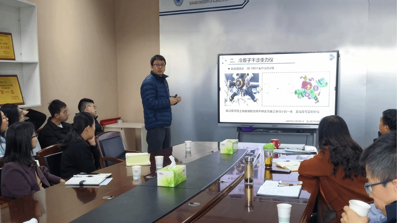 報告會中,賈森副研究員首先為大家介紹了原子的激光冷卻、原子態(tài)選擇和操縱方法、冷原子的干涉?zhèn)鞲性?,接著從自己主持研制冷原子干涉絕對重力儀這一課題出發(fā),為大家講解了冷原子干涉超精密測量的主要應(yīng)用,并就冷原子干涉的核心技術(shù)、關(guān)鍵器件、關(guān)鍵工藝以及冷原子干涉技術(shù)的重點難點問題結(jié)合自己的工作實際給出了解決方案。