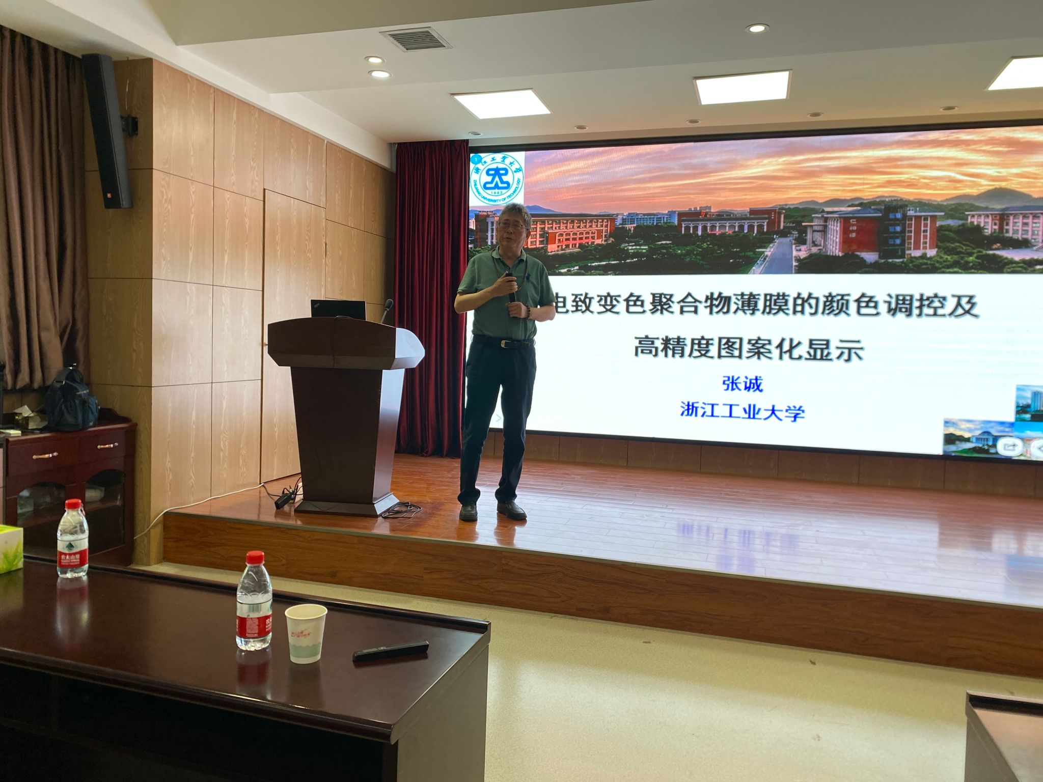 5月20日,浙江工業(yè)大學(xué)張誠(chéng)教授應(yīng)我校輕工科學(xué)與工程學(xué)院(柔性電子學(xué)院)、科技處及前沿院邀請(qǐng),做客我?!扒把乜茖W(xué)報(bào)告”,作了題為“電致變色聚合物薄膜的顏色調(diào)控及高精度圖案化顯示”的學(xué)術(shù)報(bào)告。報(bào)告會(huì)由輕工學(xué)院院長(zhǎng)呂斌教授主持,學(xué)院相關(guān)專業(yè)教師、研究生及本科生參加了此次報(bào)告會(huì)。