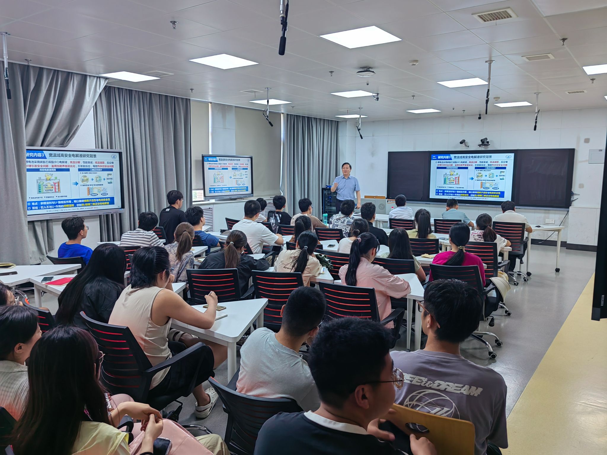 謝佳老師從問(wèn)題導(dǎo)向,國(guó)家戰(zhàn)略及未來(lái)引領(lǐng)等角度高屋建瓴的向我院師生介紹科學(xué)研究該如何找準(zhǔn)方向切入課題,對(duì)我院師生的科學(xué)研究給予方法論上點(diǎn)撥,然后介紹他結(jié)合自身的求學(xué)與工作經(jīng)歷,教授了其如何平衡科學(xué)與工程結(jié)合而完成科學(xué)研究,且取得重要成果;然后,針對(duì)鋰離子電池電極材料的結(jié)構(gòu)設(shè)計(jì)、電池安全與新型高安全的電解液開(kāi)發(fā)等做了精彩的學(xué)術(shù)報(bào)告;最后對(duì)青年教師及學(xué)生的科研與人生發(fā)展做了建設(shè)性的指導(dǎo)。此次報(bào)告激發(fā)了大家的研究興趣,進(jìn)一步拓寬了師生們?cè)谙嚓P(guān)領(lǐng)域的研究方向和思路。