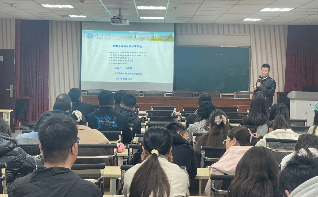 10月30日下午,應我校物理與信息科學學院、科技處及前沿院邀請,西北大學馮宏劍教授做客我校“前沿科學報告”,作了題為“載能離子束改性鈣鈦礦器件及與物質相互作用”的學術報告。報告會由物理學院院長劉建科主持,學院相關專業(yè)師生近百人參加了此次報告會。