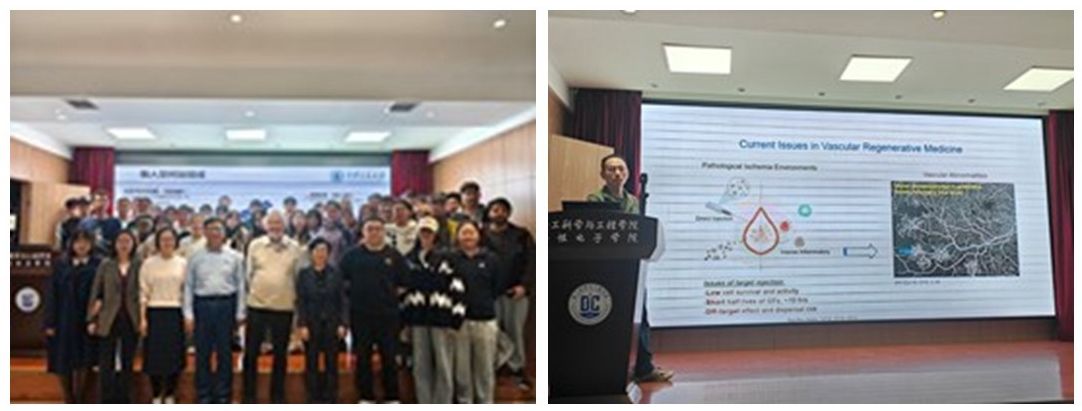 魏釗研究員從心血管疾病出發(fā),講述了目前傳統(tǒng)治療方案中存在的缺陷,介紹了水凝膠材料應(yīng)用于醫(yī)學(xué)領(lǐng)域的優(yōu)勢,講解了水凝膠材料促進(jìn)新血管生成的原理及其后續(xù)的性能調(diào)控,并對其中的力學(xué)機(jī)制進(jìn)行了詳細(xì)的解釋,展望了水凝膠材料在再生醫(yī)學(xué)領(lǐng)域的發(fā)展?jié)摿?。這是我校國家重點(diǎn)研發(fā)計(jì)劃重點(diǎn)專項(xiàng)項(xiàng)目(2022YFE0104204200)第4次在我校開展國際學(xué)術(shù)交流活動。